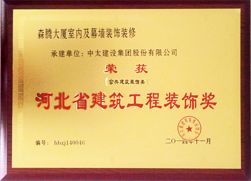 中太建設(shè)集團(tuán)榮獲“2014年河北省建筑工程裝飾獎(jiǎng)”