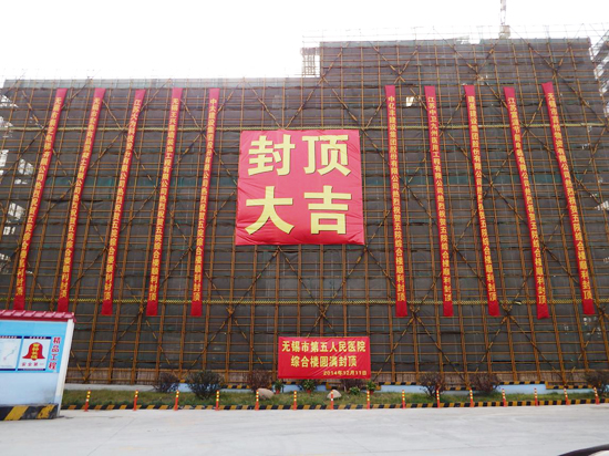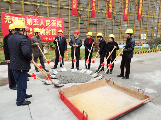 12月11日上午10時(shí)18分,無(wú)錫市第五人民醫(yī)院項(xiàng)目現(xiàn)場(chǎng)鞭炮齊鳴、掌聲雷動(dòng),在市第五人民醫(yī)院、市城市投資發(fā)展有限公司等單位代表的共同見(jiàn)證下,第五人民醫(yī)院門(mén)診綜合樓項(xiàng)目頂層最后一方混凝土澆筑完成,項(xiàng)目主體結(jié)構(gòu)順利封頂。