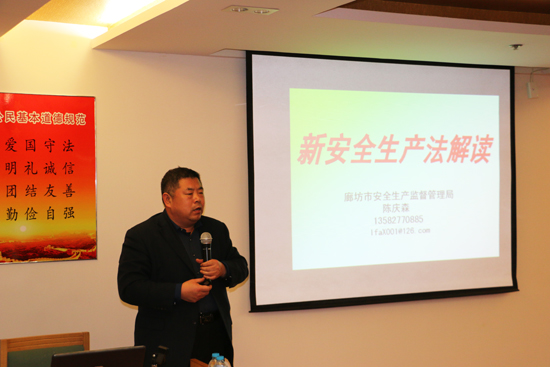 1月6日下午,中太建設(shè)集團(tuán)新《安全生產(chǎn)法》宣貫會在中太大廈17樓舉行,邀請廊坊市安全協(xié)會秘書長陳慶森老師現(xiàn)場授課,集團(tuán)公司董事長燕振義、執(zhí)行總裁張明禮及其他在家高管出席會議,副總裁同歲虎主持會議。陳慶森老師以大量鮮活案例為切入點(diǎn),結(jié)合新《安全生產(chǎn)法》的具體內(nèi)容,對比新舊兩版《安全生產(chǎn)法》的相同之處和不同之處,深刻剖析《安全生產(chǎn)法》改版的意義。陳慶森老師指出,要讓安全生產(chǎn)的理念回歸教育本質(zhì),從娃娃抓起,從身邊百姓抓起,讓每個(gè)人提高安全意識,規(guī)范生產(chǎn)生活中的各種行為,才能使得安全生產(chǎn)現(xiàn)狀得到有效改善,才能保障社會生產(chǎn)生活的有序進(jìn)行。