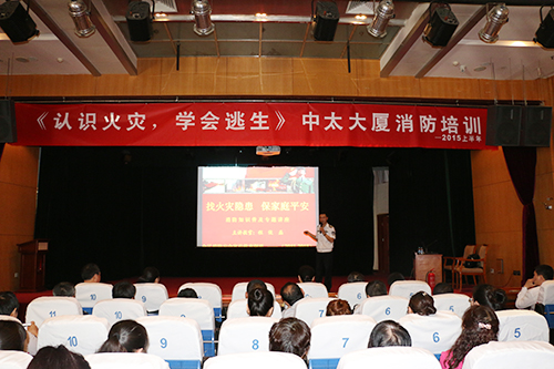 5月15日上午,中太大廈2015年上半年消防培訓(xùn)在二樓報告廳舉行,邀請石家莊市冀消安防火教育中心宣教處教員程俊磊老師,為大家?guī)砹艘粓鲆浴罢一馂?zāi)隱患保家庭安全”為主題的消防知識普及專題講座。