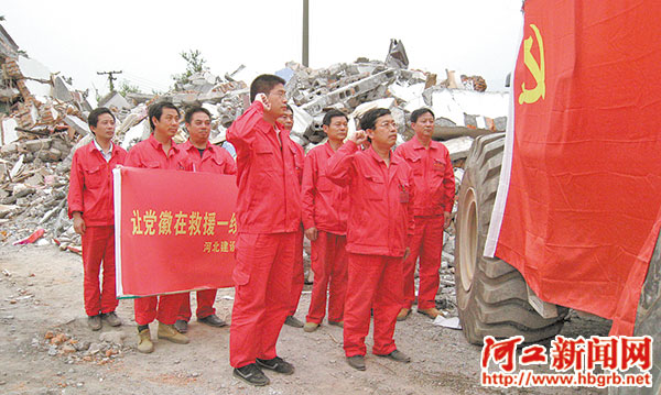 ■2008年汶川地震搶險救災現(xiàn)場舉行入黨儀式