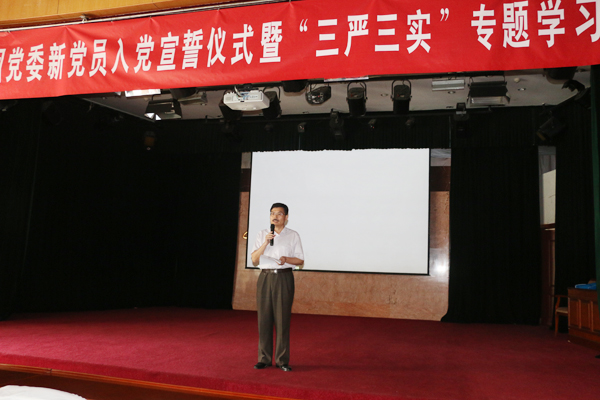 講座開始前,集團(tuán)黨委副書記鐘崇鶴同志就本次黨員學(xué)習(xí)教育專題講座的意義進(jìn)行了闡述,并代表集團(tuán)黨委對新黨員提出了希望,就黨員管理人員如何“踐行‘三嚴(yán)三實(shí)’、打造高效團(tuán)隊(duì)”提出了要求。鐘崇鶴同志指出,新黨員是各級黨組織的新鮮血液,也是在黨的事業(yè)和中太各項(xiàng)工作中涌現(xiàn)出來的優(yōu)秀分子。在此,我代表集團(tuán)黨委向新黨員同志們提出五點(diǎn)希望和要求:一是希望新黨員要不斷增強(qiáng)入黨的光榮感和責(zé)任感,堅(jiān)定對黨的信念,要把為人民服務(wù)的宗旨牢記在心;二是要始終以黨員的標(biāo)準(zhǔn)規(guī)范嚴(yán)格要求自己,不但在組織上入黨,還要在思想上入黨,使自己真正成為合格的共產(chǎn)黨員;三是在工作崗位中,以身作則,率先垂范,起先鋒模范作用,具有高尚的職業(yè)道德,忠于職守,正確履行自己的崗位職責(zé);四是要不斷學(xué)習(xí),提升自己的履職能力和素質(zhì),只有不斷加強(qiáng)政治理論和業(yè)務(wù)知識的學(xué)習(xí),才能具有較高的政治理論素質(zhì)、堅(jiān)定正確的政治方向;五是嚴(yán)格要求自己,不斷提高自己保護(hù)和防范能力,從自我做起,從小事做起,在今后工作中,嚴(yán)守黨的紀(jì)律,更好的發(fā)揮黨員先鋒模范作用。