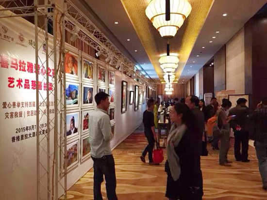 當(dāng)天晚上8點(diǎn),來自當(dāng)?shù)卣块T、行業(yè)組織、企業(yè)代表、媒體單位和其他社會(huì)各界愛心人士近500人齊聚一堂,現(xiàn)場座無虛席。在一段震撼人心的“尼泊爾地震”視頻后,活動(dòng)正式拉開序幕。拍賣從當(dāng)?shù)財(cái)z影家的兩幅作品開始,隨后的藏香、藏式珠寶、唐卡、油畫等拍品讓現(xiàn)場的氣氛持續(xù)升溫,現(xiàn)場嘉賓被精彩紛呈的藝術(shù)品吸引,更為藝術(shù)家和收藏家們的慷慨捐贈(zèng)所感染,紛紛舉手競拍,爭相獻(xiàn)出自己的愛心。在不到一個(gè)半小時(shí)的時(shí)間里,所有近20件拍品全部成交,共募集善款282800元。