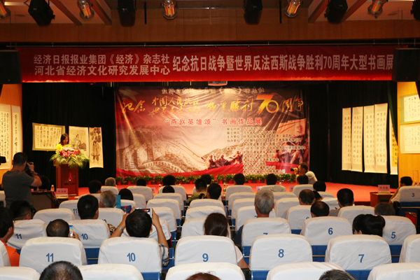 8月30日上午,由經(jīng)濟(jì)日報(bào)報(bào)業(yè)集團(tuán)《經(jīng)濟(jì)》雜志社主辦,中太建設(shè)集團(tuán)、中經(jīng)翰苑(北京)文化藝術(shù)發(fā)展有限公司協(xié)辦,《經(jīng)濟(jì)》雜志社河北經(jīng)濟(jì)文化研究發(fā)展中心、中國軍旅書畫院等單位承辦的“燕趙英雄頌--紀(jì)念抗日戰(zhàn)爭暨世界反法西斯戰(zhàn)爭勝利70周年大型書畫展”,在中太大廈二樓報(bào)告廳隆重開幕。廊坊市委宣傳部有關(guān)領(lǐng)導(dǎo)出席,經(jīng)濟(jì)日報(bào)報(bào)業(yè)集團(tuán)《經(jīng)濟(jì)》雜志社、《經(jīng)濟(jì)》雜志社河北省經(jīng)濟(jì)文化研究發(fā)展中心、及中太建設(shè)集團(tuán)等單位數(shù)十名代表參加開幕式。開幕式上,中太建設(shè)集團(tuán)黨委副書記、企業(yè)文化中心總監(jiān)鐘崇鶴代表集團(tuán)公司出席開幕式并致辭,向參加開幕式的各位領(lǐng)導(dǎo)和各位來賓蒞臨活動(dòng)表示熱烈歡迎!