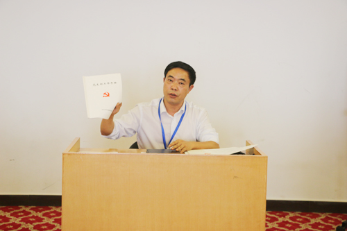 各支部書記要高度重視,不得懈怠。要按照《黨支部工作手冊(cè)》的要求認(rèn)真、規(guī)范、詳細(xì)填寫記錄好“三會(huì)一課”、“黨員活動(dòng)日”為民服務(wù)活動(dòng)等相關(guān)工作內(nèi)容,具體的由集團(tuán)黨委秘書李文成同志為大家輔導(dǎo)講解。