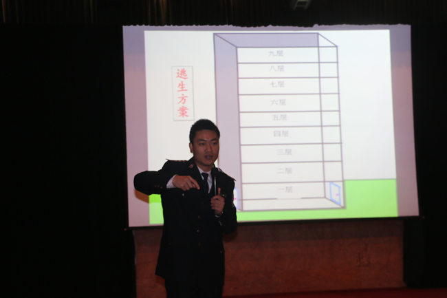 程俊磊老師從事消防宣傳及教育工作多年,為社會多家機關、企事業(yè)單位進行消防安全教育,曾對北京武警總隊、河北省財政廳、廊坊市安監(jiān)局、廊坊市人民醫(yī)院等社會各界進行過消防基礎知識宣傳,并得到廣泛好評。培訓中,他以鮮活的案例入手,分析了引起火災的原因及錯誤的防火意識,講解了如何正確使用滅火設備以及正確逃生措施等知識,最后,對國內(nèi)到國外的先進安全器材進行了推廣和宣傳,深入淺出、細膩地、系統(tǒng)地闡述了消防安全的重要性。其中,如何火場逃生常識以及正確使用防毒面具等專業(yè)消防技能,使得參訓人員印象深刻、受益匪淺。培訓過程中,程俊磊老師還與參訓人員進行了現(xiàn)場互動、交流。