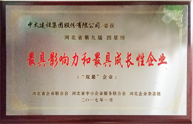近日,河北省企業(yè)聯(lián)合會第六屆會員代表大會暨2017年河北省企業(yè)管理創(chuàng)新大會在石家莊召開,會議通報《河北省第九屆“最具影響力”“最具成長性”“最受關(guān)注企業(yè)家”評審結(jié)果》。中太建設(shè)集團獲評四星級“最具影響力和最具成長性企業(yè)”(“雙最”企業(yè)),李文健主席被授予“最受關(guān)注企業(yè)家”稱號。