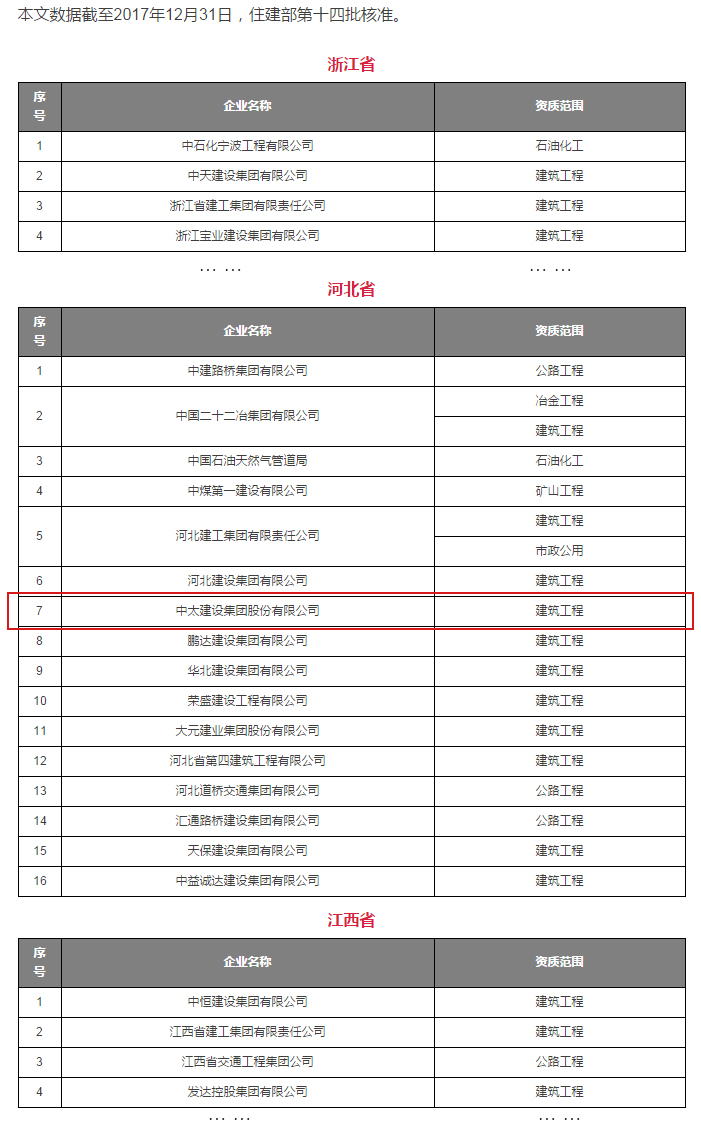 近日,由國家住房和城鄉(xiāng)建設部核準的2018年全國總承包特級企業(yè)名單公布,中太建設集團名列其中。
