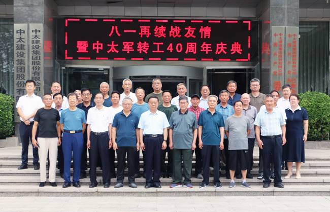 今年8月1日,是中國人民解放軍建軍98周年紀念日,在這個特殊的日子里,我們又迎來了原中國人民解放軍基建工程兵三十六支隊第352團集體轉(zhuǎn)業(yè)40周年慶典。歡聚在我們親手建造的中太大廈,隆重慶祝中太建設(shè)集團軍轉(zhuǎn)工40周年。會上,集團黨委領(lǐng)導(dǎo)向為中太建設(shè)集團的發(fā)展做出卓越貢獻的老領(lǐng)導(dǎo)、老戰(zhàn)友、老同志和集團公司全體員工致以誠摯的問候和崇高的敬意!