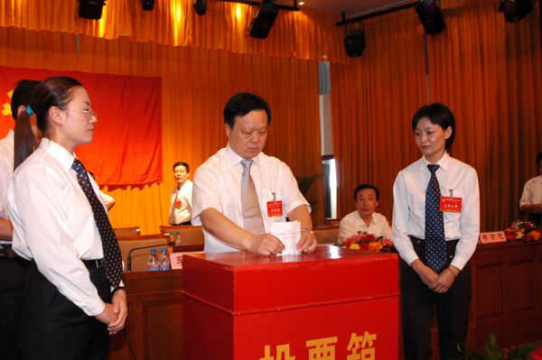 代表大會(huì)在完成各項(xiàng)議程后,在雄壯的《國(guó)歌》聲中勝利閉幕。  黨委書記李文健同志在黨代會(huì)上投票