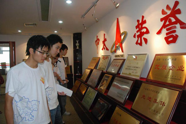 在為期兩天的“曙光行動”行程中,同學們來到中太老年康復醫(yī)院,把自己制作的一串串千紙鶴贈送給正在住院治療的老爺爺、老奶奶們,并做了一些力所能及的事情,使他們感受到了90后學子們的真情和希望所在。同學們還參觀了中太下屬部分企業(yè),并作客廊坊廣播電臺“心海夜航”直播間,與聽眾們就“感恩”話題,進行了溝通和交流;參觀中太建設(shè)集團抗震救災榮譽陳列室;與中太建設(shè)集團曾參與四川汶川大地震搶險救援隊員、過渡安置房安裝援建突擊隊員以及中太新入公司的大學生們進行了座談。