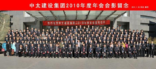 “規(guī)范管理謀發(fā)展 創(chuàng)先爭優(yōu)譜新篇”。在辭舊迎新之際,1月16日上午,中太建設(shè)集團(tuán)在廊坊中太大廈二樓報(bào)告廳隆重召開了2010年度年會(huì),總結(jié)過去,謀劃未來。董事局主席、黨委書記李文健到會(huì)并做重要講話。中太投資控股集團(tuán)副總裁趙志民,董事局成員(董事局秘書);監(jiān)事會(huì)成員;經(jīng)營層成員;來自全國各地的各工程局長、副局長;外埠各分公司、子公司(董事長、經(jīng)理、書記);廊坊區(qū)域分公司、子公司(董事長、經(jīng)理、書記、副經(jīng)理、主任工程師、辦公室主任);總部機(jī)關(guān)全體人員;2010年度部分受集團(tuán)表彰先進(jìn)集體和先進(jìn)個(gè)人共計(jì)300人參加了會(huì)議。大會(huì)由集團(tuán)副總裁劉啟友主持。