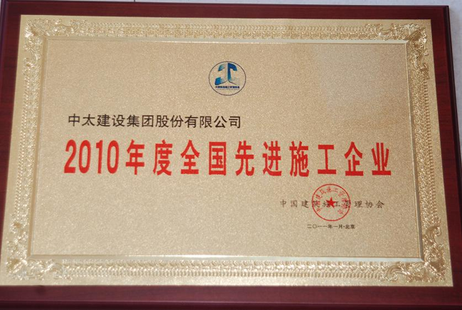 集團(tuán)公司榮獲“2010年度全國先進(jìn)施工企業(yè)”榮譽(yù)