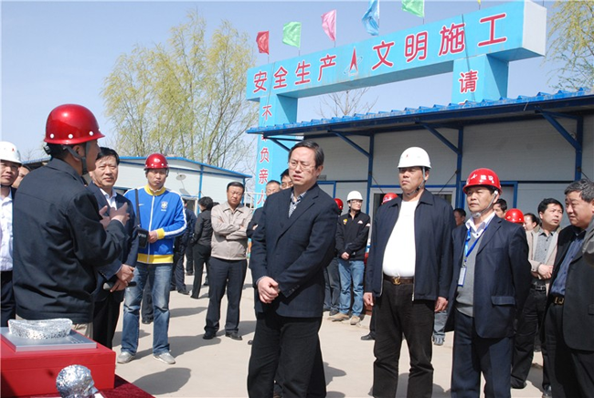 4月11日上午,廊坊市委書記趙世洪等領(lǐng)導(dǎo)一行,蒞臨由集團公司承建的開發(fā)區(qū)廊坊精雕數(shù)控機床制作基地項目建設(shè)工程視察指導(dǎo)。集團公司總裁張明禮、總工張國棟等陪同視察。