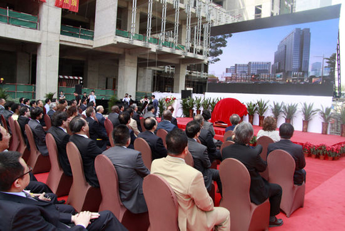 建設(shè)部、外交部、北京市建委、北京外交人員服務(wù)局等領(lǐng)導(dǎo)、阿根廷駐華大使、集團董事局主席李文健啟動結(jié)構(gòu)封頂儀式