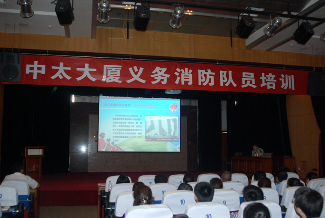 此次培訓(xùn)由市消防支隊(duì)遲楊科長(zhǎng)親自授課,大廈共有二十二個(gè)單位近百人參加,中太建設(shè)集團(tuán)領(lǐng)導(dǎo)高度重視大廈的消防工作,總裁張明禮同志親臨現(xiàn)場(chǎng)并致辭。培訓(xùn)過(guò)程中,遲科長(zhǎng)首先從火災(zāi)的視頻案例、如何提高四個(gè)能力建設(shè)、如何對(duì)寫字樓開展防火巡查及消防設(shè)施設(shè)備的維護(hù)等方面進(jìn)行了詳細(xì)細(xì)致的講解,緊接著從貼近生活、實(shí)用性強(qiáng)的消防常識(shí)入手,講解了火災(zāi)的預(yù)防、報(bào)警、撲救、滅火器的使用方法、人員疏散及逃生十三決。