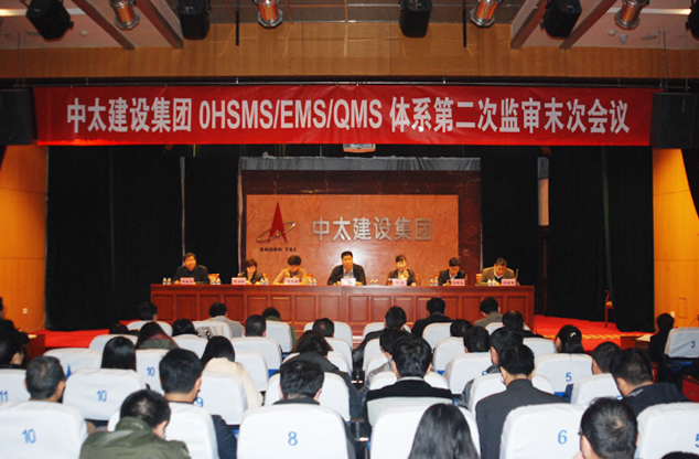 11月8日上午,中太建設集團召開OHSMS/EMS/QMS體系第二次監(jiān)審末次會議,集團董事局副主席、執(zhí)行總裁張明禮到會并講話。廊坊區(qū)域所屬各單位總經(jīng)理、副總經(jīng)理、總工程師、安全負責人、體系負責人、辦公室主任、內(nèi)審員及機關全體人員參加了會議。