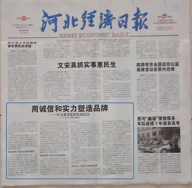 河北經(jīng)濟(jì)日報報道了中太建設(shè)集團(tuán)用誠信和實力塑造品牌