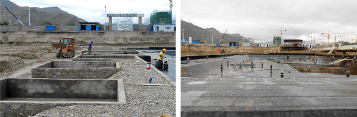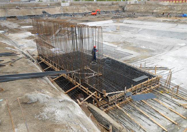 中太建設集團第十一工程局自4月份成立項目部以來,進行了大量精心的前期準備工作,包括員工生活區(qū)的搭建、施工隊伍的調(diào)度組織、工程設計圖紙的優(yōu)化落實、施工區(qū)外圍廣告墻的設計制作及安裝等。截至9月中旬,降水工程已開始全面降水、樁基工程也已全部施工完成,特別是4#-11#樓已完成獨立基礎和筏形基礎的土方開挖,其中4#-7#樓的混凝土墊層已澆筑、獨立基礎的磚胎膜正在砌筑。地下室防水工程也已開始施工,其中4#樓防水已大面積完成,6#、7#塔吊基礎已完成鋼筋綁扎,1#樓獨立基礎土方已開挖并已完成90%工程進度。