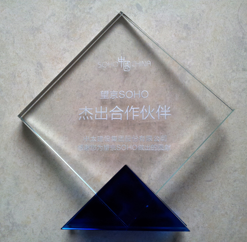 日前,soho中國有限公司向中太建設(shè)集團頒發(fā)“望京soho杰出合作伙伴”獎杯,以感謝集團公司在建設(shè)望京soho過程中給予的巨大支持,同時送上一張望京soho實景照片。soho中國有限公司董事長潘石屹在照片上親筆寫道:“您的汗水和努力,創(chuàng)造了這座建筑奇跡!”