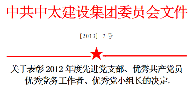2012年度,集團(tuán)公司各級(jí)黨組織堅(jiān)持以科學(xué)發(fā)展觀為指導(dǎo),按照集團(tuán)黨委的總體要求,緊緊圍繞“一園兩翼,多元發(fā)展,實(shí)現(xiàn)中太產(chǎn)業(yè)結(jié)構(gòu)轉(zhuǎn)型升級(jí)”和“三個(gè)跨越、四個(gè)一體化”的戰(zhàn)略發(fā)展目標(biāo),堅(jiān)持“打中太牌,走全國路,謀海外財(cái)”的發(fā)展方針,深入貫徹落實(shí)黨的十八大精神,結(jié)合黨委開展的“三抓三帶”活動(dòng),團(tuán)結(jié)帶領(lǐng)廣大黨員積極創(chuàng)先爭優(yōu),服務(wù)中心工作,為推動(dòng)企業(yè)持續(xù)、健康、和諧發(fā)展發(fā)揮了黨組織的戰(zhàn)斗堡壘作用和政治保障作用;廣大黨員在各自的崗位上勤奮工作、勇挑重?fù)?dān),發(fā)揮了黨員的模范帶頭作用,涌現(xiàn)出了一批業(yè)績突出的先進(jìn)集體和優(yōu)秀個(gè)人。為表彰先進(jìn),樹立典型,充分發(fā)揮榜樣的示范作用,激勵(lì)黨員和員工見賢思齊,全面推動(dòng)集團(tuán)公司科學(xué)健康發(fā)展,在紀(jì)念中國共產(chǎn)黨建黨92周年之際,集團(tuán)黨委決定,對(duì)混凝土公司黨支部等8個(gè)“先進(jìn)黨支部”、林維生等39名“優(yōu)秀共產(chǎn)黨員”、楊召國等9名“優(yōu)秀黨務(wù)工作者”、閆建薇等10名“優(yōu)秀黨小組長”予以通報(bào)表彰。