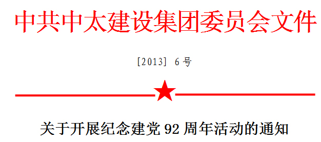 為慶祝中國共產(chǎn)黨建黨92周年,弘揚黨的光榮傳統(tǒng)和優(yōu)良作風(fēng),進(jìn)一步調(diào)動和激勵廣大黨員“關(guān)心中太、維護(hù)中太、效力中太”工作的熱情,開創(chuàng)各項工作創(chuàng)新驅(qū)動和科學(xué)發(fā)展的新局面,為完成2013年各項工作任務(wù)和經(jīng)濟(jì)技術(shù)指標(biāo)鼓勁加油,推動集團(tuán)公司又好又快發(fā)展,深入貫徹黨的“十八大”精神和習(xí)近平同志關(guān)于在全黨進(jìn)一步“轉(zhuǎn)變作風(fēng)、端正學(xué)風(fēng)、改進(jìn)文風(fēng)”的要求,結(jié)合集團(tuán)公司實際,集團(tuán)黨委決定,在“七·一”前后,開展以下系列活動: