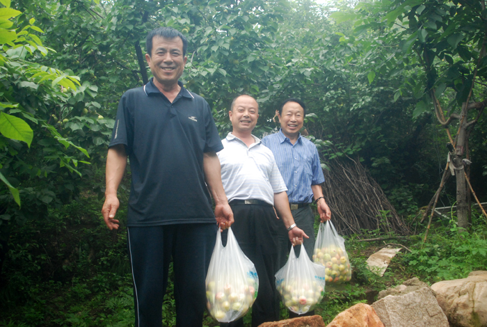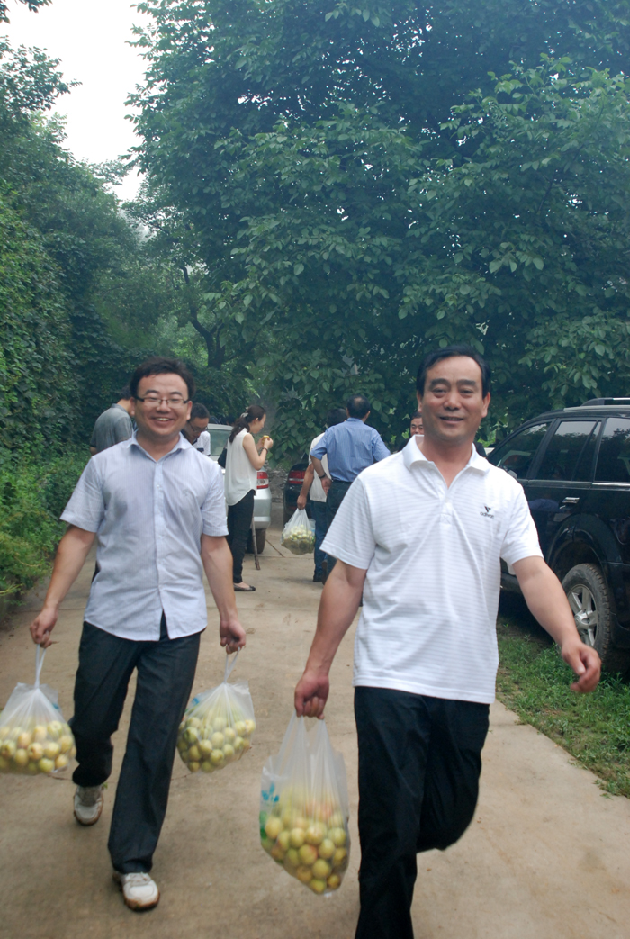 從京承高速公路下道,兩輛大巴車沿著崎嶇山路緩慢行駛。山道兩側(cè)灌木郁郁蔥蔥,置身于這天然氧吧,清新的空氣順暢地能讓人一下子呼吸到了丹田而心神氣爽。一路上,路邊采摘的果園比比皆是。空氣中那果實散發(fā)出的清香,直入心脾,令人口舌生津。