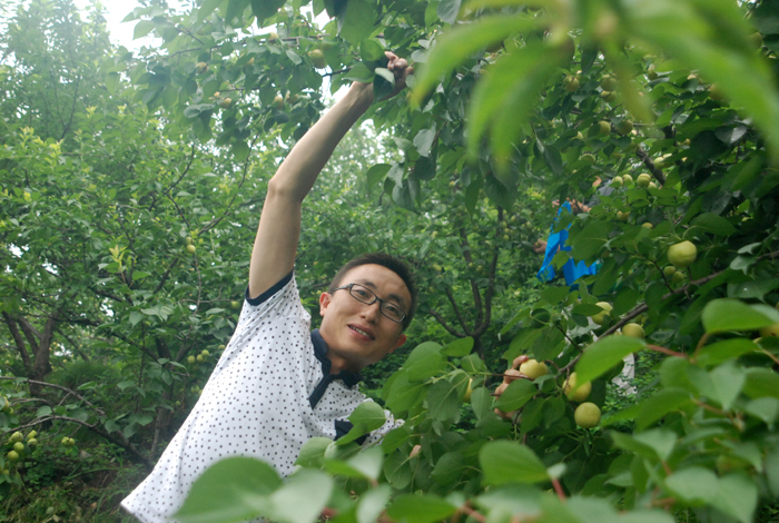 盡管空氣潮濕,路面濕滑,但阻擋不了大家采摘的熱情。面對著綴滿枝頭的杏兒,大家早就沒有平日里的文雅和羞澀,翹腳、彎枝,瞄準(zhǔn)了那大個地、泛著紅暈的京白杏兒,熟練地采摘。