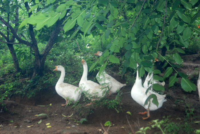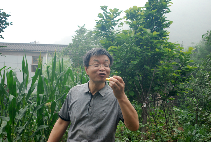 據(jù)第八工程局工作人員介紹,此采摘處約有20畝果樹林地。山上種植著杏兒、桃兒和核桃。山下院內(nèi)菜園里,種植著施用農(nóng)家肥的各類時蔬和植物。以蟲兒、草兒為食、自由散養(yǎng)的雞鴨悠閑漫步在山林中,好一派恬靜如詩、優(yōu)美如畫的田園風(fēng)光。