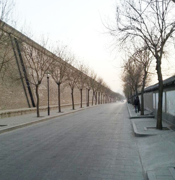 又行駛了半小時(shí)后到達(dá)了西安北站,出站后坐上去酒店的大巴,看著西安北站以及沿途的建筑,還是讓我體會(huì)到了一些古城的味道,雖然是新式建筑,但是色彩上卻都是灰色,我和同事猜測(cè)著可能是市政規(guī)劃要求的吧!隨著車(chē)子接近目的地,我們來(lái)到了古代長(zhǎng)安城里,在進(jìn)城的剎那,我們看到了高大的古城墻,導(dǎo)游告訴我們是這就是古代的長(zhǎng)安城,整個(gè)長(zhǎng)安城有這古城墻圍繞著,城墻外是護(hù)城河......這時(shí)我只被這長(zhǎng)長(zhǎng)的高大城墻震住了,導(dǎo)游的話已經(jīng)聽(tīng)不見(jiàn),眼看著大巴已經(jīng)進(jìn)入城里,城墻也被遠(yuǎn)遠(yuǎn)的甩在了后邊,還好沒(méi)過(guò)多久我們到了酒店。放下東西,吃過(guò)晚飯,和同事三五成群又走回了城墻根下,總是想著近距離接觸一下這令人震撼的墻體,“秋風(fēng)吹渭水,落葉下長(zhǎng)安。三千繁華已流盡,斜陽(yáng)斜照古城墻”,想起這詩(shī),無(wú)限的蒼涼感頓時(shí)油然而生。雖然此時(shí)不是秋天,也沒(méi)有斜陽(yáng),但是在這陰冷寂寥的冬日里,越發(fā)顯得沉重!