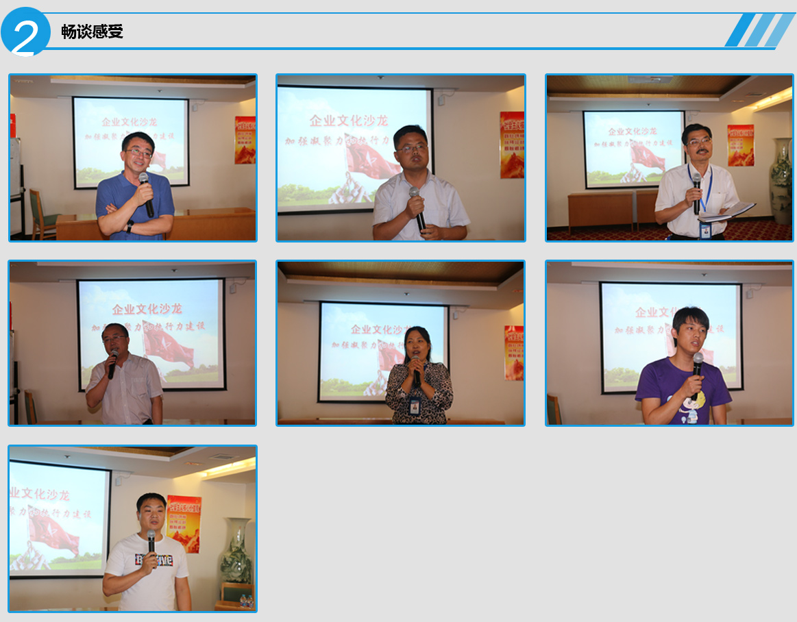 第二部分為領導暢談文化心得。一改傳統會議嚴肅形式,通過面對面交流拉近企業領導者和員工間的距離,通過輕松、自由的形式讓向全體員工企業文化魅力。