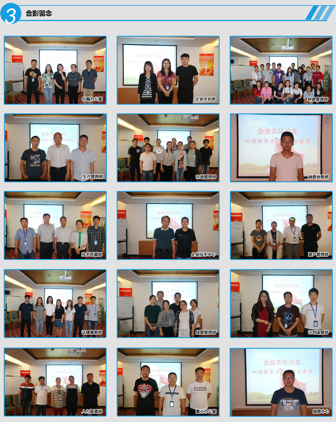 整個活動在愉悅、和諧的氣氛中進行,受到了廣大員工的一致認可。活動結束后,全體人員以部室為單位合影留念。